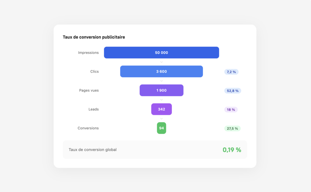 Calculez et optimisez votre taux de conversion publicitaire avec cet outil gratuit.